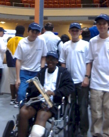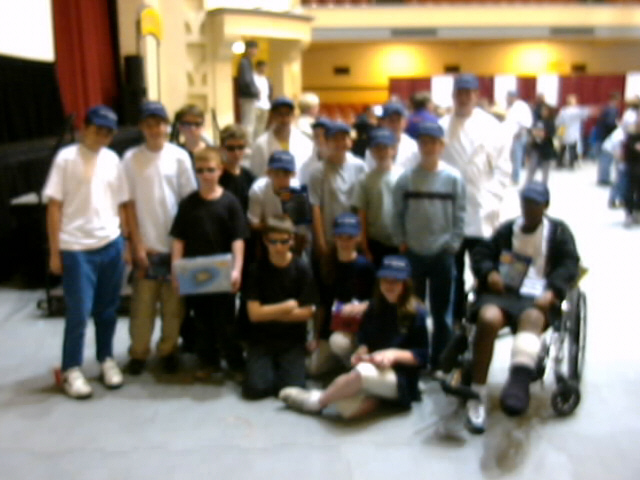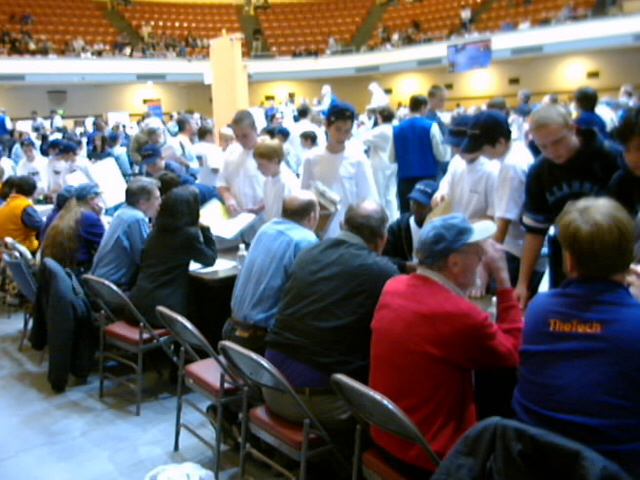 Here the boys are after the judging, each holding their prize - an HP scientific calculator. Oh boy - it does hyberbolic cosines! |