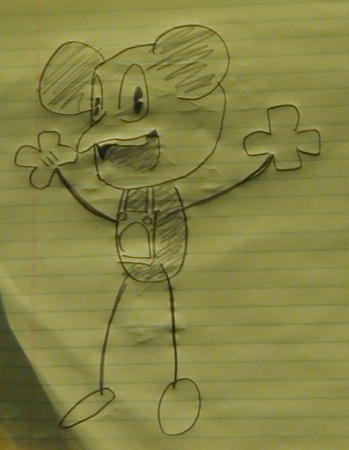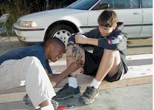 | Rigel demonstrates the art of drilling while conversing. Greg and Kenneth nervously look on. | |