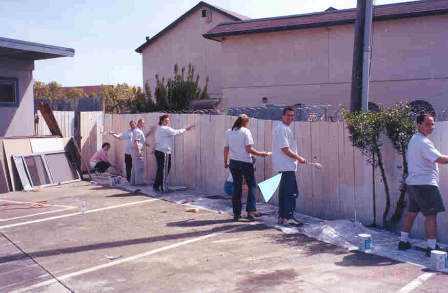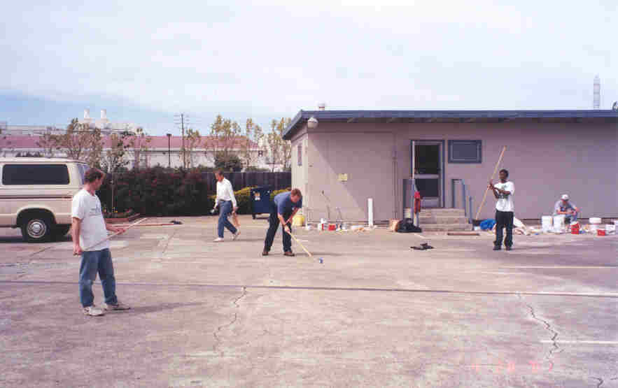 During cleanup, it became apparent that the painting poles and old rolls of masking tape made for the perfect elements for "3-way masking tape catch", seen here in progress. |